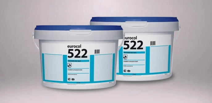 - При укладке покрытий, подверженных сильному изменению размеров под влиянием тепла (усадка/растяжение), рекомендуем использовать клеи 528 Eurostar Allround, 599 Eurosafe Super.